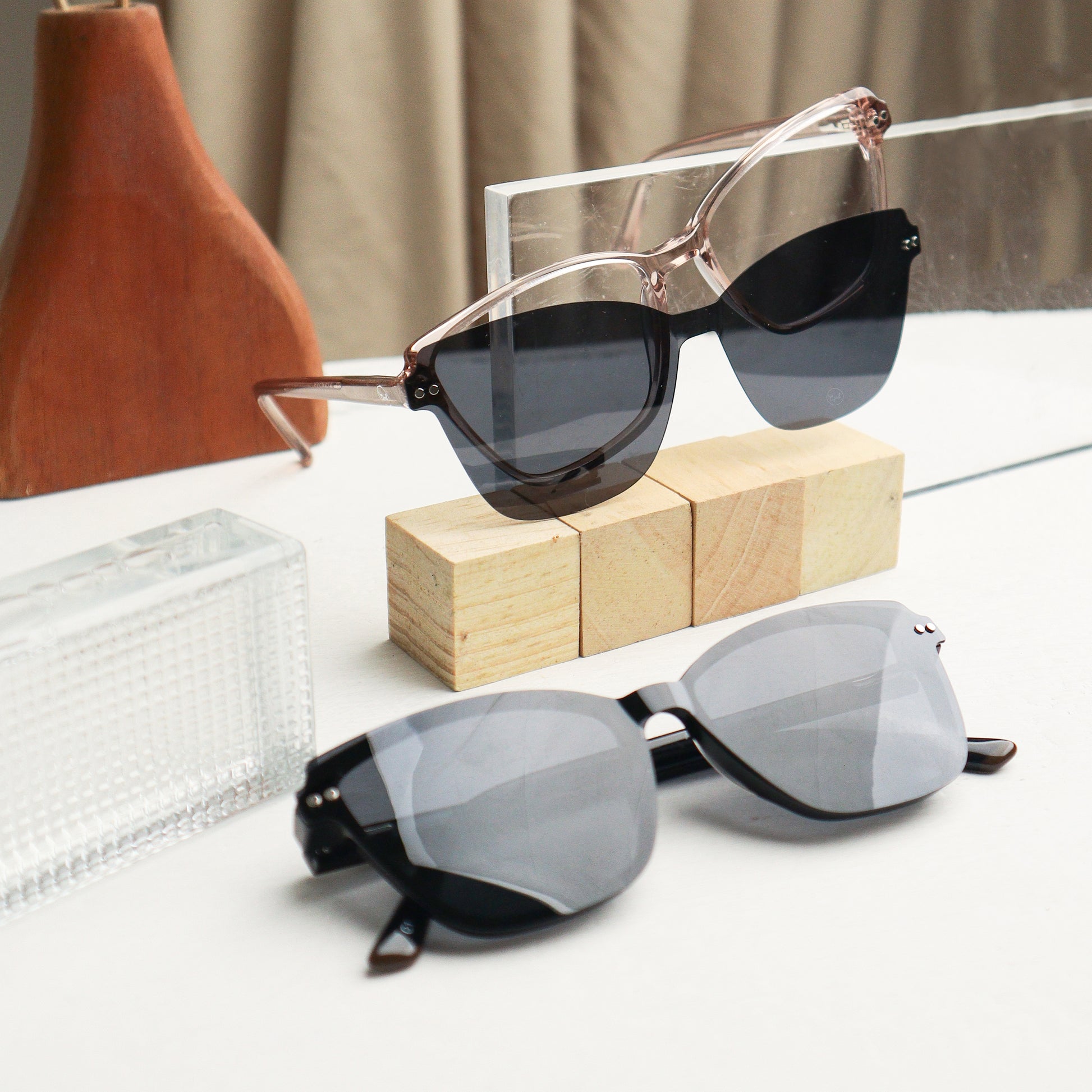 Clip On Seren hadir dengan desain modern berbentuk kotak lembut yang memberikan tampilan elegan dan stylish. Dilengkapi dengan fitur clip on, kacamata ini dapat dengan mudah diubah menjadi kacamata hitam, memberikan kenyamanan dan perlindungan optimal saat beraktivitas di luar ruangan.